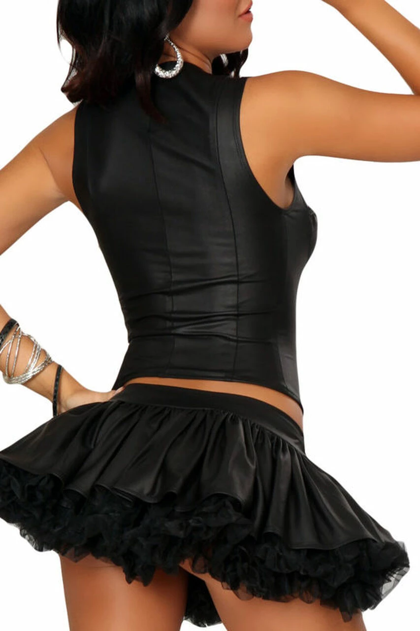*Zip Front Black Corset Style Top with Crescent Cut Out Cups
