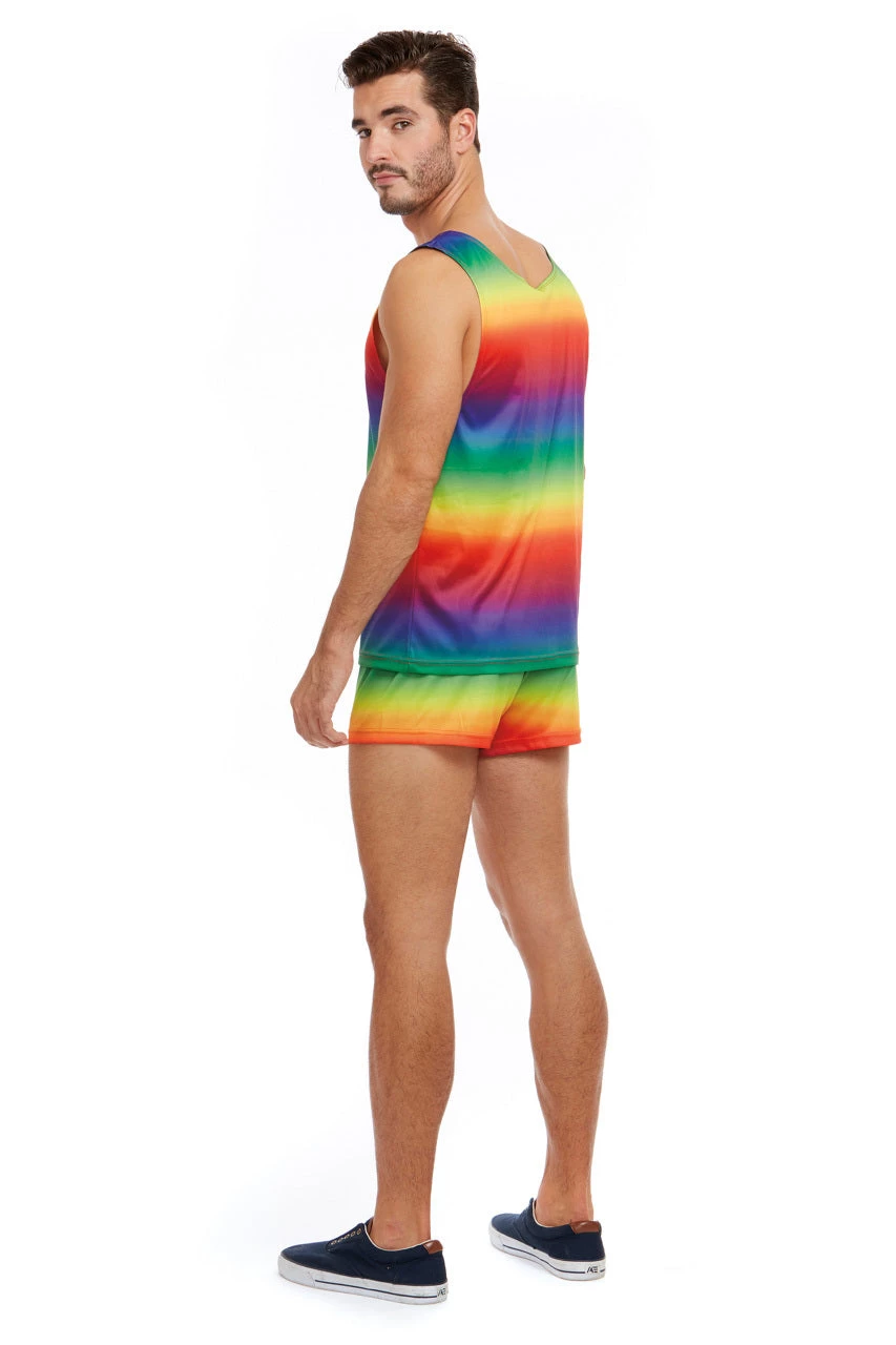 Show your pride off in this Men’s Rainbow costume featuring a tank top and matching shorts.