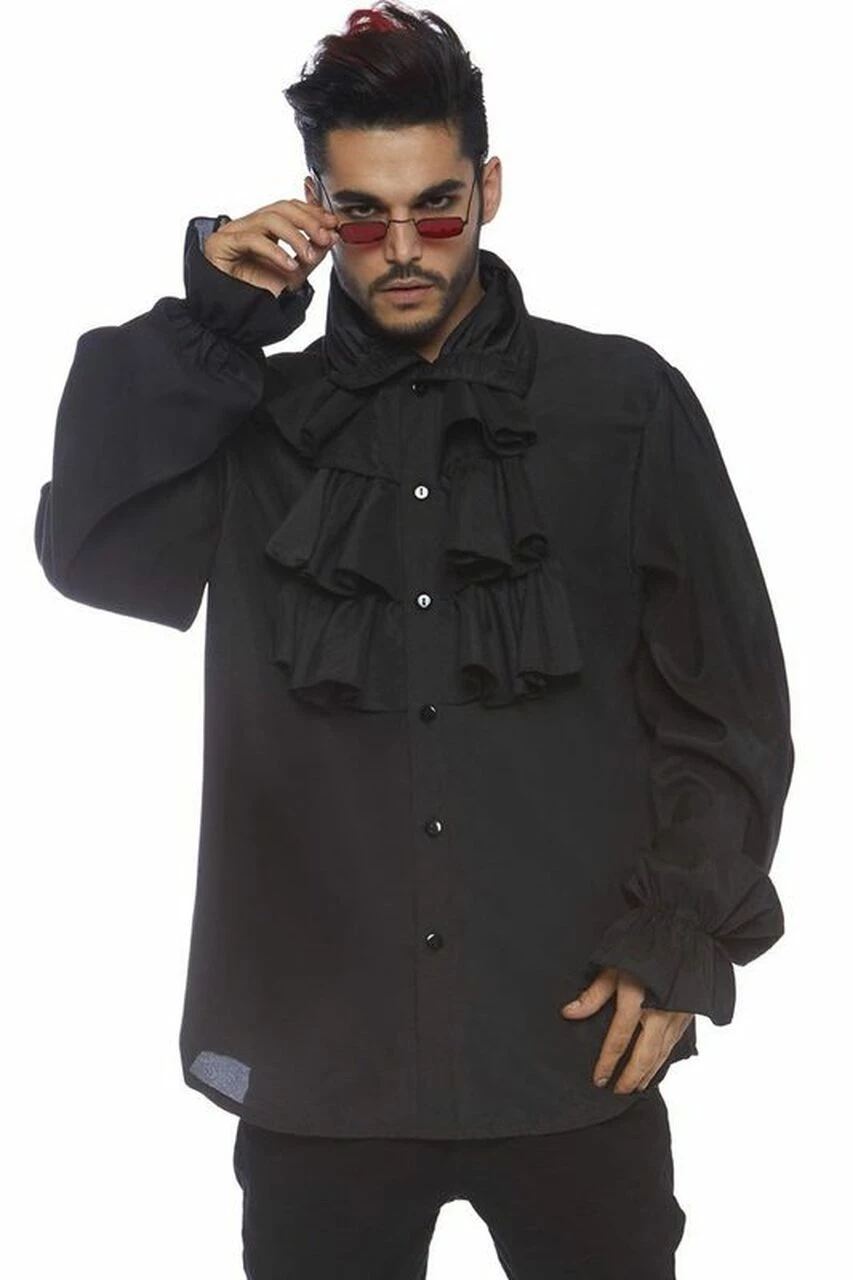 This men’s, long sleeve, ruffle front shirt is the perfect item for your pirate or vampire costume.